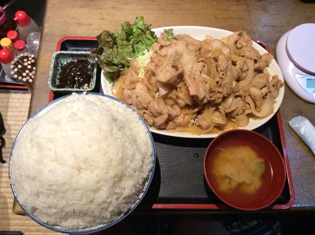 上州屋メガ焼肉定食ライス特特盛り定食上空アングル