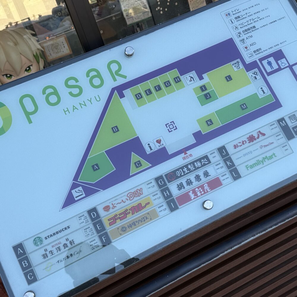 pasar羽生スタジアムは、埼玉県羽生市の東北道羽生PA下り線内フードコートに位置しています。