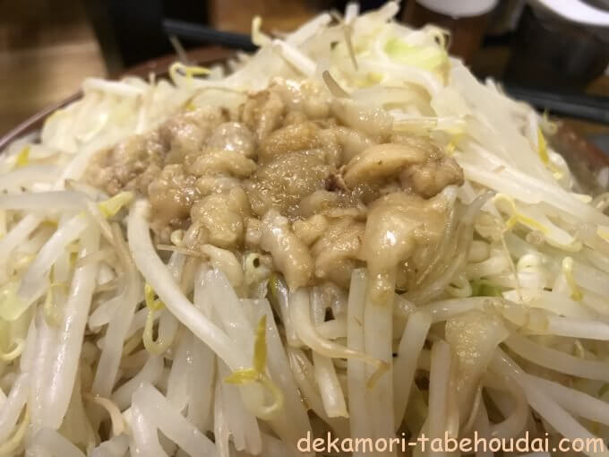 全体量が多く、ヤサイだけでも2kg手前くらいはありそうだからか、キャベツ比率は少なめでした。